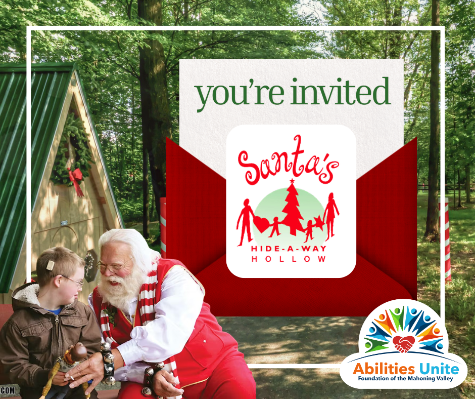 Abilities Unite is thrilled to collaborate with Santa and his North Pole council of Elves to extend a heartfelt invitation for you and your family to join us at Santa’s Hide-A-Way Hollow on Sunday, June 28, 2026. To ensure a special experience, Santa kindly requests that you limit your party to immediate family members (parents, children, and grandparents). This magical day is specially designed for children with disabilities aged 3 to 12, and older siblings are welcome to join. Please note that registration is required by May 15th.